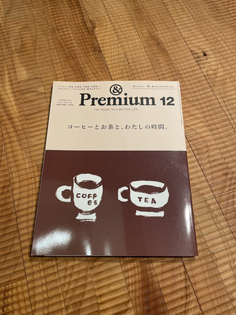 マガジンハウスの情報誌『&Premium』12月号「コーヒーとお茶と、わたしの時間」にて、多賀茶焙煎所をご紹介いただきました。